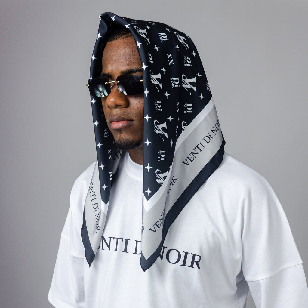 Crafted of a luxe blend of cotton and silk, this square scarf is stamped with Venti Di Noir signature logos.