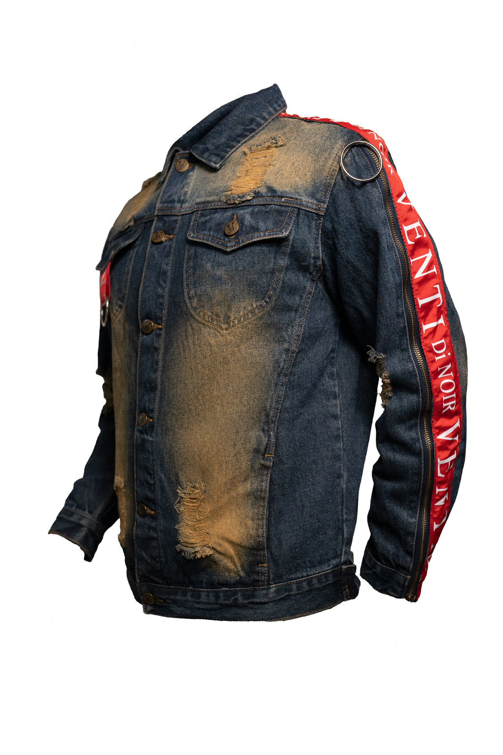 Tailored from washed denim, this Jean Denim jacket supplies a twist to a classic silhouette. Cut in a regular fit, it features a square collar and distorted gold metallic hardware with a distressed finish. The piece has a Venti...