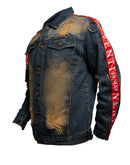 Tailored from washed denim, this Jean Denim jacket supplies a twist to a classic silhouette. Cut in a regular fit, it features a square collar and distorted gold metallic hardware with a distressed finish. The piece has a Venti Di Noir leather label on the back with signed staples.