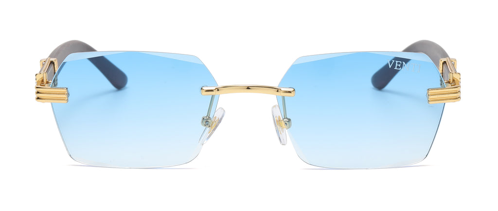 This wrapped semi-rim shield style features wide and hollow tapered temples in various colors. The frame features a gold-tone logo, while the temples are enriched with a signature Venti Di Noir emblem.